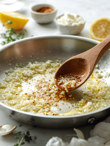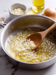 - Add minced garlic and cook for another 30 seconds, stirring constantly until garlic is fragrant and just starting to turn golden, filling the air with a warm aroma.