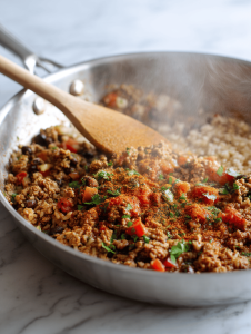 - Ground meat (beef or sausage): Adds richness and protein. For a leaner version, swap with turkey or chicken.