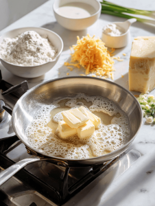 - In a saucepan, melt the butter over medium heat until it starts to bubble and releases a fragrant aroma, about 2 minutes.
