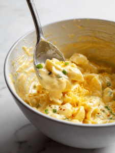 Step 6: Combine the pasta with the cheese sauce, adding a splash of reserved water to loosen if needed.