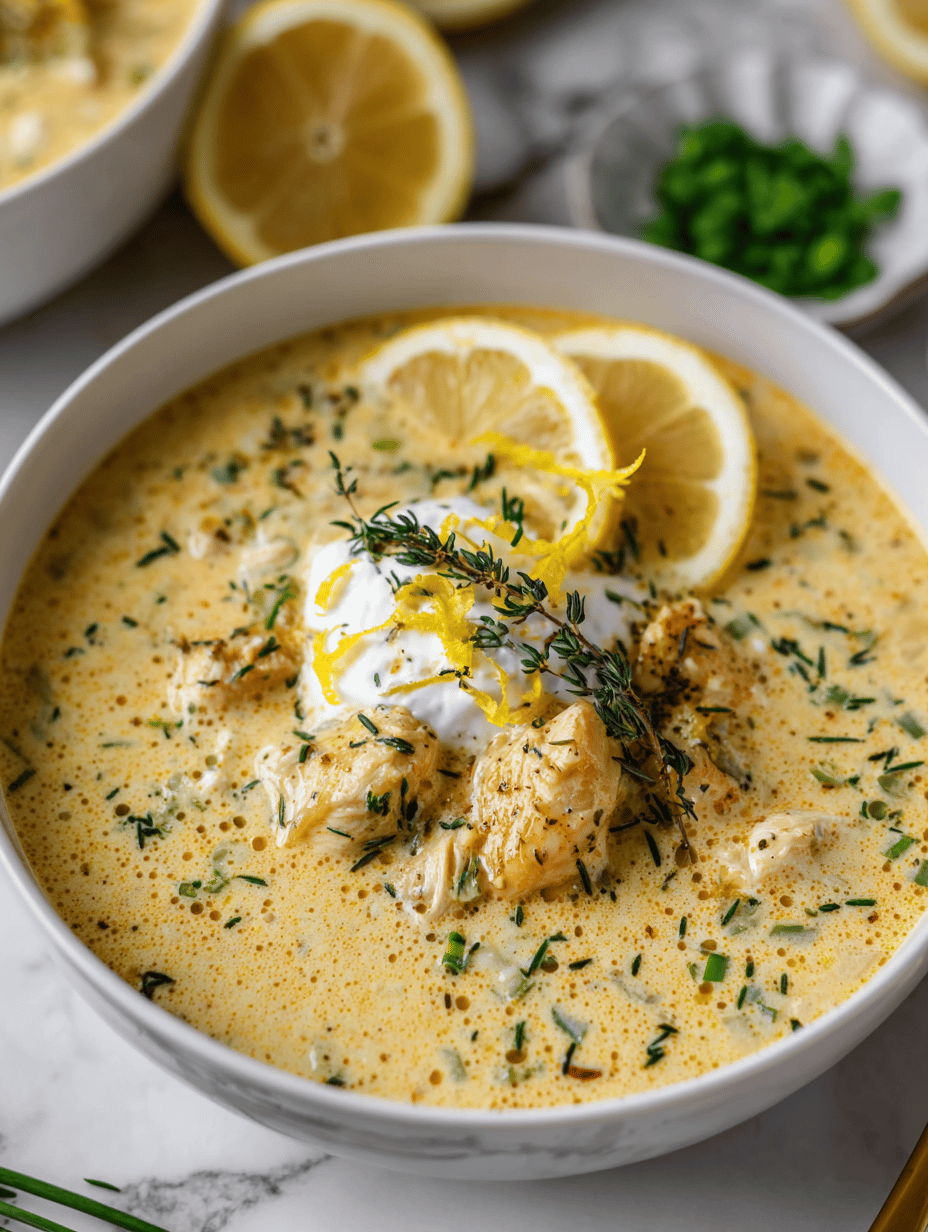 Use a lemon squeezer to extract fresh lemon juice, then stir it into the soup along with dried or fresh thyme, and season with salt and pepper to taste. Let it simmer uncovered for 5 minutes to slightly thicken and meld flavors.